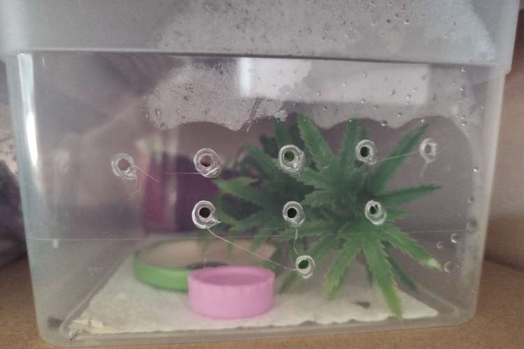 La dimensions minimales pour un adulte est 45 × 45 × 60 cm. Pour un juvénile, un habitat plus petit facilitera la recherche de nourriture. Les enclos grillagés, type flexariums sont à éviter car ils ne retiennent pas assez l’humidité.